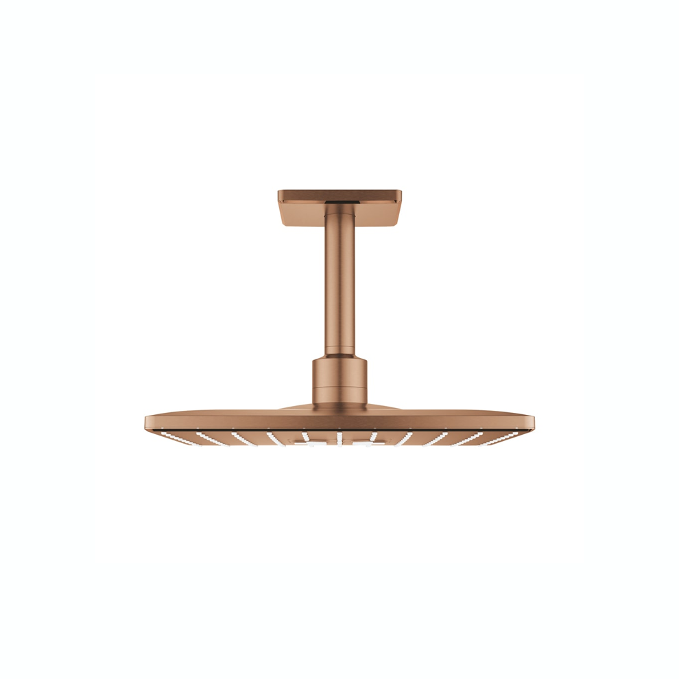 Grohe Rainshower 310 Smartactive Cube 142 mm Brushed Warm Sunset Tepe Duşu. Rainshower tepe duşu SmartActive 310 Cube. 2 akış şekli: Grohe PureRain ActiveRain. 142 mm dikey duş kolu. DreamSpray mükemmel akış. Uzun ömürlü parlak kaplama. SpeedClean kireç kırıcı sistem. Uzun ömür için Inner WaterGuide. 26483000 veya 26484000 iç gövdeyle sipariş verilir (Ayrıca satın alınması gerekir)Duşunuz sizin için çok çalışır. Sabahları sizi güne hazırlarken akşamları da günün stresini atmak için en iyi yoldur. Grohe Rainshower 310 SmartActive tepe duşu her zaman yardıma hazırdır. Duş ikisi arasında geçiş yapabileceğiniz veya her ikisini birden tercih edebileceğiniz iki sprey seçeneği sunar. İlk seçenek sizi yumuşak bir yaz yağmuru gibi saran Grohe PureRain Sprey; ikincisi ise şampuanı durulama gücüne sahip olmanın yanı sıra size uyarıcı bir baş boyun ve sırt masajı yapan yeni Grohe ActiveRain modelidir. Ayrıca satılan Grohtherm SmartControl termostatın basarak ve döndürerek çalıştırılan ergonomik düğmesini veya Grohe SmartControl bataryayı kullanarak bu sprey modellerinden birini tercih edin. 310 mm’lik kare tepe duşu akışın vücudunuzun tamamını kaplaması ve optimum düzeyde kullanım kolaylığı sağlanması için 142 mm’lik kolun üzerine tavana monte edilir. Grohe DreamSpray teknolojisi duşun tüm nozüllerinden gelen akışı mükemmel bir şekilde ayarlar. SpeedClean teknolojisi tek bir silişte su çıkış noktalarını kireçten arındırmayı sağlar; şık ve uzun ömürlü Grohe StarLight kaplama ise fiziksel buhar biriktirme (PVD) özelliği sayesinde çizilmeye karşı ekstra dayanıklıdır ve kusursuz görünümünü uzun yıllar boyu korur. Güvenlik açısından son derece iyi yalıtılan Inner WaterGuide sıcak suyu yüzeylerden uzakta tutarak yüzeylerin aşırı ısınmasını engeller ve palak krom kaplamanın daha uzun bir süre boyunca kullanılmasını sağlar. Bu ürün Grohe Rainshower Universal iç gövde setini 26484000 (su tasarrufu sağlayan Grohe EcoJoy özellikli) veya 26483000 (Grohe EcoJoy özelliğine sahip olmayan) gerektirir. Bu set ayrıca sipariş edilmelidir. Detaylı bilgi için Whatsapp üzerinden bize ulaşın.