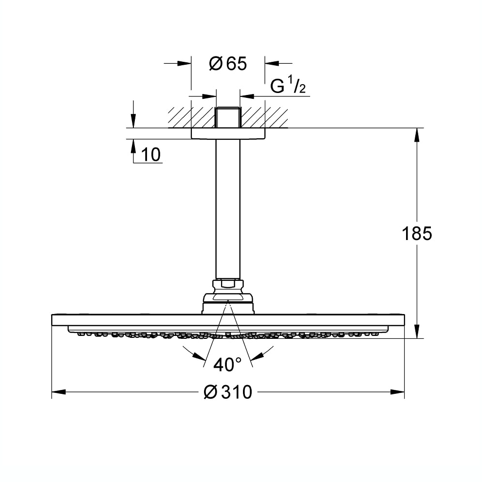 Grohe Rainshower Cosmopolitan 310 Hard Graphite Tepe Duşu Seti. Tepe duşu Rainshower Cosmopolitan 310 (27478000). Metal. Tek akış şekli: Rain akış. Rainshower tavandan duş kolu 142 mm (28724). Su tasarruflu 9 5 lt/dk. akış limitleyici. DreamSpray mükemmel akış. Uzun ömürlü parlak kaplama. SpeedClean kireç kırıcı sistem. Şok ısıtıcılar için uygundur142 mm duş koluna sahip tavana monteli Grohe Rainshower Cosmopolitan 310 Sert Grafit Tepe duşu seti her banyoya anında tasarım stili ve üstün performans katar. Sistem aynı zamanda Grohe’nin en son teknolojisiyle donatılmıştır. Grohe DreamSpray her nozülden gelen suyun eşit şekilde akmasını sağlar; bu büyük ve yumuşak damlalarıyla PureRain spreyin keyfini çıkarmanın mükemmel bir yoludur. Yaz yağmuru gibi! Grohe EcoJoy ise su kullanımını azaltırken tam bir duş keyfi sağlar. Kullanışlı silikon SpeedClean nozulları kolayca kir ve kireçten arındırır ve Inner WaterGuide duş yüzeyinin ısınmasını önlemenin yanı sıra çizilmeye dayanıklı ve temizlemesi kolay Grohe StarLight yüzeyini mükemmel dayanıklılık için korur. Detaylı bilgi için Whatsapp üzerinden bize ulaşın.