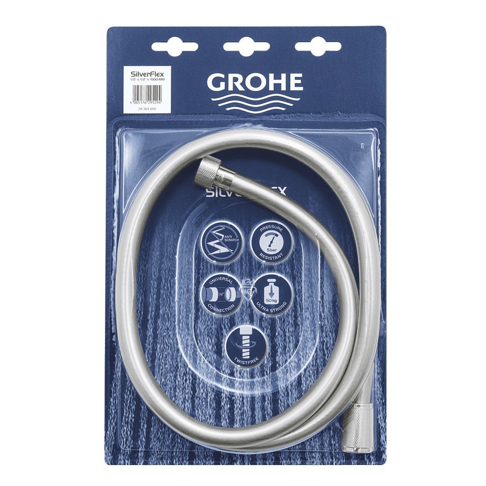 Grohe Silverflex Duş Hortumu. Pürüzsüz plastik yüzey. Esnek ve kolay temizlik. Twistfree fonksiyonu ile dolanmayan hortum. 150 cm Detaylı bilgi için Whatsapp üzerinden bize ulaşın.