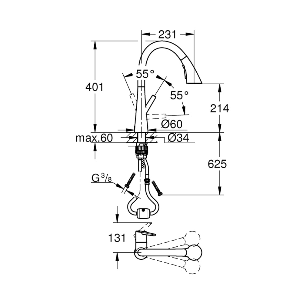 Grohe Zedra Paslanmaz Çelik Eviye Bataryası. Uzun ömürlü parlak kaplama. SilkMove 35 mm seramik kartuş. Easydock M spiral çıkış ucunun yerine kusursuz bir şekilde oturması için entegre mıknatıs. 3 farklı sprey. Normal akışa otomatik geçiş. Ayarlanabilir akış limitleyici. Döner çıkış ucu. Hareket ekseni 360°Grohe Zedra mutfak bataryasının şık silueti üstün performans ve rahatlık sunmak için tasarlanmış bir dizi kullanışlı özelliği içinde barındırır. Oluklu bir çıkış ucuna ve zarif akışkan hatlara sahip batarya tek delikli montaj için tasarlanmıştır. C şeklinde yüksek çıkış ucu vazoları ve geniş kapları doldurmak için yeterli alan bırakır. Daha fazla esneklik ve kullanım kolaylığı sağlamak için çıkış ucu 360 derece dönebilir. Bataryanın spiralli konforlu duş başlığı sebzeleri hazırlarken veya eviyenin ulaşılması zor yerlerini temizlerken size 3 farklı sprey akışı sunar: Düz akış güçlü jet akışı ve su tüketimini %70’e kadar azaltan su tasarruflu Grohe Blade Spray akışı. Duraklatma düğmesine basarak su akışını kesebilir düğmeyi bırakarak akışı kaldığı yerden devam ettirebilirsiniz. İşiniz bittiğinde su otomatik olarak düz akışa döner. Konforlu duş başlığı güçlü Grohe Magnetic Docking özelliği sayesinde takılmadan yerine geri çekilir. Yalnızca parmaklarınızla bile kireç birikintilerinden arındırılabilen silikon SpeedClean su çıkış uçları sayesinde temizlik de çok kolaydır. Grohe SilkMove kartuş bataryanın daima yumuşak ve hassas biçimde çalışmasını sağlar. Grohe QuickFix Plus montaj sistemi sayesinde montaj işlemi çocuk oyuncağıdır. Bu monoblok mutfak bataryası çizilmeye dayanıklı ekstra bir katman için fiziksel buhar biriktirme (PVD) teknolojisi kullanan şık ve dayanıklı Grohe StarLight kaplamaya sahiptir. Detaylı bilgi için Whatsapp üzerinden bize ulaşın.