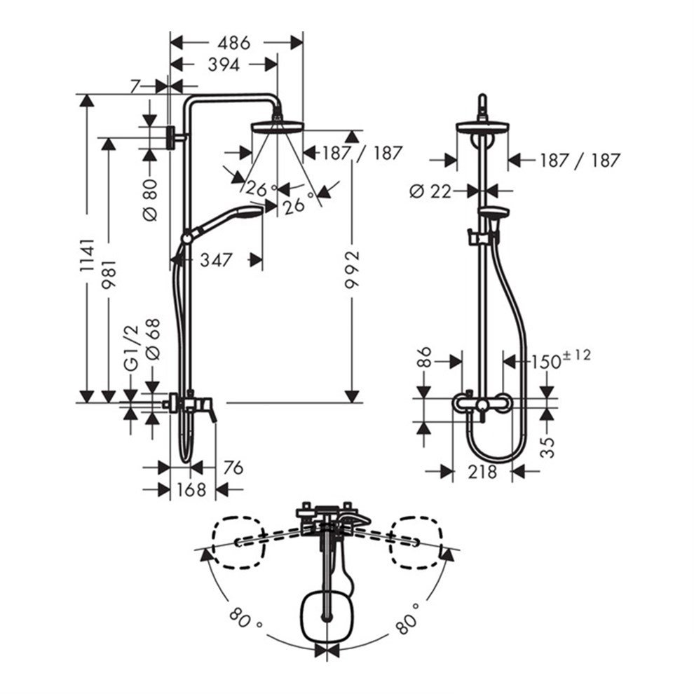 Hansgrohe Croma Select E 180 2 Jet Showerpipe Tek Kollu Batarya İle. Croma Select E 180 2 Jet tepe duşu. Duş başlığı ölçüsü: 180 mm x 180 mm. Açısı ayarlanabilir tepe duşu. Sprey türü: Rain IntenseRain. IntenseRain akış miktarı (3 bar basınçta): 16 l/dk. Rain akış miktarı (3 bar basınçta): 16 l/dk. Dönebilir duş dirseği. Yüksekliği ayarlanabilir el duşu askısı. Montaj türü: aplikeŞunlardan oluşur. Isiflex Duş Hortumu DN15 1 60 m (# 28276000). Croma Select E 180 2 Jet tepe duşu (# 26524000). Croma Select E Multi el duşu (# 26810400) Detaylı bilgi için Whatsapp üzerinden bize ulaşın.