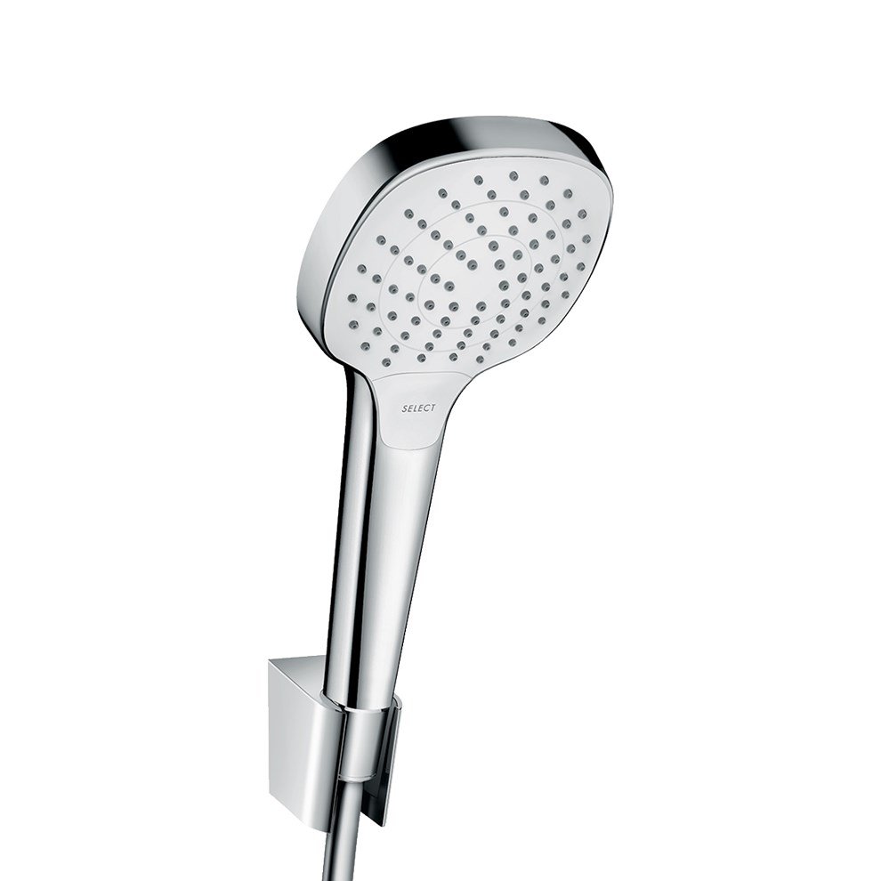 Hansgrohe Croma Select E Askılı El Duşu. Şunları içerir: El duşu Duş askısı Duş hortumu. Duş başlığı ölçüsü: 110 mm. Sprey türü: Rain IntenseRain Turbo Rain. Sprey türü ayarı: Select tuşu ile konforlu sprey türü değişimi. Maksimum akış miktarı 3 bar basınçta: 14 7 l/dk. Dönebilir bağlantı: Hortum bükülmelerine karşı hareketli bağlantı. Ses sınıfı: I. Akış miktarı sınıfı: B. Plastik duş askısı Detaylı bilgi için Whatsapp üzerinden bize ulaşın.