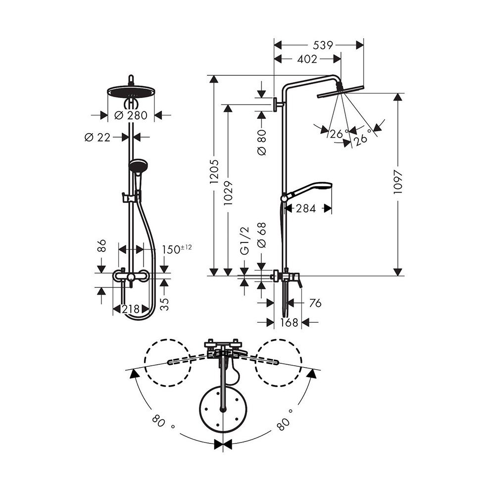Hansgrohe Croma Select S 280 Batarya Dahil Duş Kolonu. Duş başlığı ölçüsü: 280 mm. Küresel bağlantı: açısı ayarlanabilir tepe duşu. Sprey türü: RainAir. Maksimum akış miktarı 3 bar basınçta: 15 l/dk. RainAir akış miktarı (3 bar basınçta): 15 l/dk. Sprey diski rengi: tamamen krom kaplı sprey diski. Dönebilir duş dirseği. Yüksekliği ayarlanabilir el duşu askısı. Montaj türü: aplike. Seramik kartuş. Ayarlanabilir ısı limitleyici Detaylı bilgi için Whatsapp üzerinden bize ulaşın.