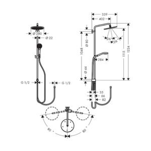 Hansgrohe Croma Select S 280 Reno Duş Kolonu. Duş başlığı ölçüsü: 280 mm. Küresel bağlantı: açısı ayarlanabilir tepe duşu. Sprey türü: RainAir. RainAir akış miktarı (3 bar basınçta): 10 l/dk. Sprey diski rengi: tamamen krom kaplı sprey diski. Dönebilir duş dirseği. Yüksekliği ayarlanabilir el duşu askısı. Çıkış: tepe duşu el duşu. Su bağlantısı: Isiflex duş hortumu 0 8m. Montaj türü: aplike Detaylı bilgi için Whatsapp üzerinden bize ulaşın.