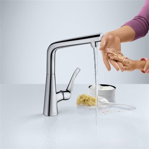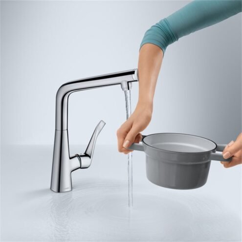 Hansgrohe Metris Select Evye Bataryası. Krom. Dönüş alanı 3 basamakta 110 150 veya 360 derece ayarlanabilir.. Daha rahat kullanım ve duvar önü dar alanlar için volan dikey konumlandırılabilir.. Sprey türü: laminar sprey. Select düğmesi: Su akışı için konforlu start/stop. Sürekli akım su ısıtıcıları için uygun Detaylı bilgi için Whatsapp üzerinden bize ulaşın.