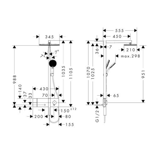 Hansgrohe Raindance Alive Q Showerpipe 210/340 1jet EcoSmart with ShowerSelect Comfort