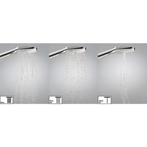 Hansgrohe Raindance Select E 120 Unica Set. Sprey türü: Rain RainAir Masaj sprey. Sprey türü ayarı: Select tuşu ile sprey türü değişimi. 90° ayarlanabilir kayar pozisyon: Sağa sola aşağı ve yukarı hareketli. Maksimum akış miktarı: 16 l/dk. Duş barı mesafelendiriciŞunlardan oluşur. Isiflex Duş Hortumu DN15 1 60 m. Raindance Select E 120 3 jet el duşu DN15. Unica’S Puro Duş Barı 0 65 m. Casetta E Sabunluk Krom Detaylı bilgi için Whatsapp üzerinden bize ulaşın.