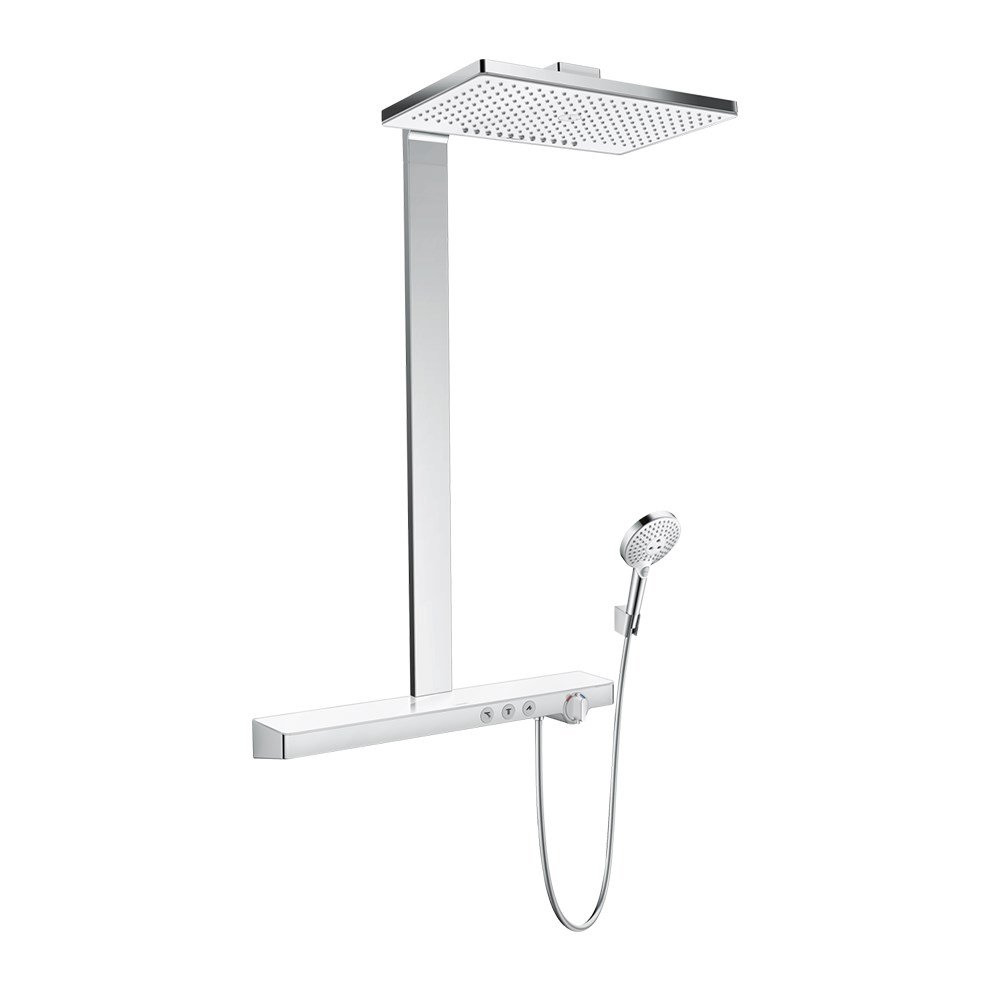 Hansgrohe Rainmaker Select 460 2J Termostatik Bataryalı Duş Kolonu. Maksimum akış miktarı 3 bar basınçta: 19 l/dk. Rainmaker Select 460 2jet tepe duşu. Duş başlığı ölçüsü: 460 x 300 mm. Raf: güvenli camdan üretilmiş raf. Raf rengi: beyaz. Sprey türü: Rain RainStream. Sprey diski rengi: kolay temizlenebilen beyaz sprey diski. ShowerTablet Select 700 termostat. İzole edilmiş sıcak su kanalı. Haşlanmaya karşı koruma: 40°C’de güvenlik kilidi. Ayarlanabilir sıcak su limitleyici. Çıkış yönlendirici: select butonu ile yönlendirme. Montaj türü: aplike. Merkez mesafe: 150 ± 18 mm Detaylı bilgi için Whatsapp üzerinden bize ulaşın.