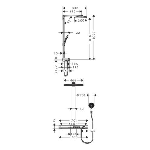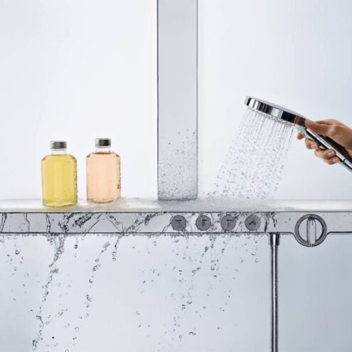 Hansgrohe Rainmaker Select 460 Termostatik Bataryalı Duş Kolonu. Maksimum akış miktarı 3 bar basınçta: 27 l/dk. Rainmaker Select 460 3jet tepe duşu. Duş başlığı ölçüsü: 460 x 300 mm. Raf: güvenli camdan üretilmiş raf. Raf rengi: beyaz. Sprey türü: Rain MonoRain RainStream. Sprey türü ayarı: Select tuşu ile konforlu sprey türü değişimi. Sprey diski rengi: kolay temizlenebilen beyaz sprey diski. ShowerTablet Select 700 termostat. İzole edilmiş sıcak su kanalı. Haşlanmaya karşı koruma: 40°C’de güvenlik kilidi. Ayarlanabilir sıcak su limitleyici. Çıkış yönlendirici: select butonu ile yönlendirme. Montaj türü: aplike. Merkez mesafe: 150 ± 18 mm Detaylı bilgi için Whatsapp üzerinden bize ulaşın.