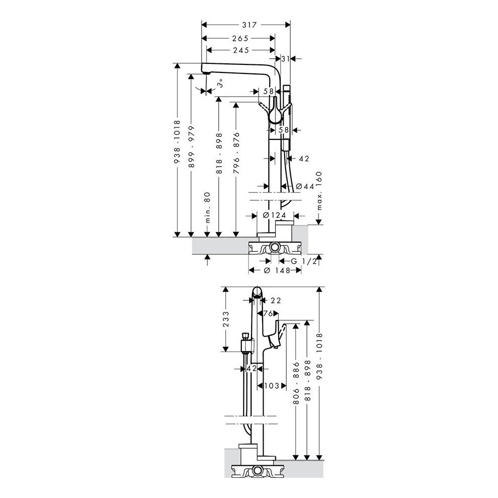 Hansgrohe Talis S Yerden Küvet Bataryası. Projeksiyon 245 mm. Bağlantı türü: iç set ile. Seramik kartuş. Sıcak su ısısı limitlenemez.. Otomatik yönlendirme sıfırlamasına sahip. Ses sınıfı: I. Akış miktarı sınıfı: D B Detaylı bilgi için Whatsapp üzerinden bize ulaşın.