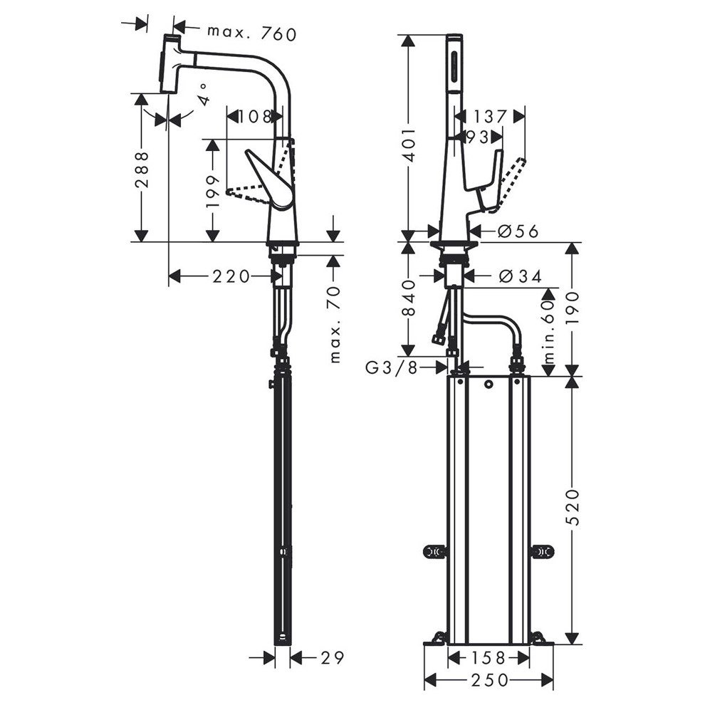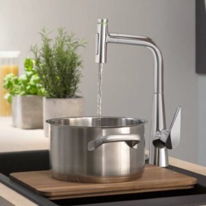 Hansgrohe Talis Select M51 Tek Kollu Eviye Bataryası. Şunları içerir: Tek kollu mutfak bataryası Hortum kutusu. ComfortZone 300. Dönüş alanı 110° / 150°. Sprey türü: Laminar sprey Duş spreyi. Kilitlenebilir sprey türü: Kilitlenebilir duş spreyi Sprey yönlendiriciye basarak sprey geri döner ve sprey kolu kapatıldığında otomatik olarak geri döner. Select düğmesi: Su akışı için konforlu Start/stop. MagFit manyetik el duşu yuvası. Maksimum akış miktarı 3 bar basınçta: 8 l/dk. Seramik kartuş. Bağlantı türü: G ⅜ bağlantı hortumları. Ayarlanabilir ısı limitleyici ve hacim kontrolü. Entegre çek valf. Sürekli akım su ısıtıcıları için uygun. Uzatma uzunluğu 76 cm’ye kadar. Ses sınıfı: I. Akış miktarı sınıfı: O O Detaylı bilgi için Whatsapp üzerinden bize ulaşın.