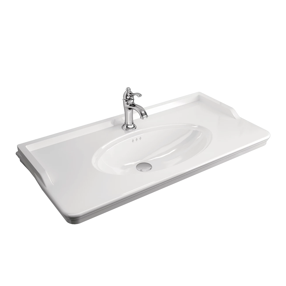 Kale Artdeco 100 cm Etajerli Lavabo. Beyaz. 100 cm genişlik. 50 cm derinlik. Armatür delikli. Su taşma delikli. Duvara montaja uygun. Banyo dolapları ile kullanıma uygundur.. Fiyata armatür ve sifon dahil değildir.Artdeco sadeliğiyle natürel formlarıyla ve stilize edilmiş klasik tarzıyla banyoları çok daha çekici hale getiriyor. Artdeco serisi modern ve klasik tarzı aynı mekanda tek bir form haline dönüştürerek banyolarda tüm tabuları yıkıyor!Ürün boyutları +- 1 cm değişiklik gösterebilir. Detaylı bilgi için Whatsapp üzerinden bize ulaşın.