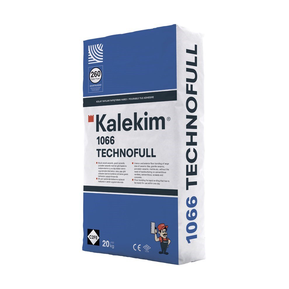 Kalekim 1066 Technofull 20 kg Gri Kolay Yayılan Yapıştırma HarcıTanım. Hızlı priz alan yüksek performanslı uzatılmış çalışma süresine sahip kolay yayılan çimento esaslı yapıştırma harcıdır.Ambalaj. 20 kg kraft torbaKullanım Alanı. Büyük ebatlı seramik granit seramik porselen seramik cotto klinker mermer gibi kaplama malzemelerinin iç ve dış mekan zemin uygulamalarında beton sıva şap gibi yüzeyler üzerine kombine yönteme gerek kalmadan yapıştırılmasında. Alttan ısıtmalı zeminlerde ve eski seramik granit üzerine seramik kaplama uygulamalarında. Yoğun yaya ve yük trafiğinin olduğu alışveriş-iş merkezleri hastane okul gibi mekanların zemin uygulamalarında kullanılır. Bir gün içerisinde kullanıma açılması istenen devlet binaları kafeler süpermarketler hava alanları gibi mekanlarda hızlı seramik kaplamak için idealdirÖzellikler. Tüketim zaman ve işçilikten tasarruf sağlar. Akıcı kıvamı sayesinde seramik arkasını kombine yapıştırma yöntemine ve seramiklerin üzerine kuvvet uygulanmasına gerek kalmadan %100 kaplar. Hızlı priz özelliği sayesinde 6 saat sonra mukavemet alır. Yüksek yapışma gücüne sahiptir. Ani ısı değişimleri sebebiyle oluşan yüzey gerilimlerine dayanıklıdır. Uzun çalışma süresine sahiptir. Kolay taraklanabilirTeknik Özellikleri (23°C ve %50 Bağıl Nem)Genel Bilgiler. Görünüm: Gri renkli toz. Raf Ömrü: Açılmamış ambalajında kuru ortamda 12 ayUygulama Bilgileri. Uygulama Sıcaklığı: (+5°C) – (+35°C). Karışım Oranı: 4 6-5 lt su / 20 kg toz. Kap Ömrü: 1 saat. Açık Bekletme Süresi (EN 1346): En az 30 dk. sonra ≥ 0 5 N/mm². Derz Doldurma Süresi: 3-4 saat. Tüketim Ortalama: 3-5 kg/m²Performans Bilgileri. Yapışma Mukavemeti (EN 1348):. Erken Çekme 6 saat sonra ≥ 0 5 N/mm². Başlangıç ≥ 1 N/mm². Suya Daldırıldıktan Sonra ≥ 1 N/mm². Isıyla Yaşlandırıldıktan Sonra ≥ 1 N/mm². Donma-Çözünme Çevriminden Sonra ≥ 1 N/mm². Sıcaklık Dayanımı (-40°C) – (+80°C). Tehlikeli Maddeler (EN 12004): Güvenlik Bilgi Formu’na bakınız.. Yangına Tepki: A1 Detaylı bilgi için Whatsapp üzerinden bize ulaşın.