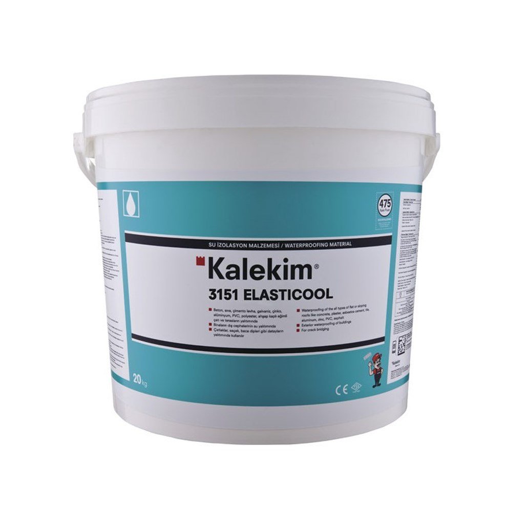 Kalekim 3151 Elasticool 20 kg Akrilik Su Yalıtım MalzemesiTanım. Akrilik dispersiyon esaslı tek bileşenli çatı yüzeylerinin yalıtılması için yüksek elastikiyete sahip radyan ısı enerjisini yansıtarak tasarruf sağlayan su geçirmez sıvı plastik kaplama malzemesidir.Özellikler. Yüksek UV (radyal ısı) yansıtma özelliğine sahiptir.. Yüzey sıcaklığını düşürerek binayı fazla ısıdan korur ve bina içerisindeki sıcaklığı düşürür.. Soğutma için kullanılan elektrik enerjisi ihtiyacını azaltarak enerji tasarrufu sağlar.. UV ışınlarına yüksek dayanımlıdır.. Kuruduktan sonra % 400 elastiktir.. Düşük sıcaklıklarda esnekliğini korur.. Zor yüzeylere güçlü yapışma özelliğine sahiptir.. Zorlu hava koşullarına ve yaşlanmaya karşı dirençlidir.. Etkin su buharı geçirgenliği vardır.. Eksiz yekpare su yalıtımı sağlar.. Çevre dostudur solvent içermez.. İşçilik maliyeti düşüktür.. Kullanıma hazırdır havasız püskürtme yöntemi ile fırça veya rulo ile kolayca uygulanabilir.Ambalaj. 20 kg’lık plastik kova.Kullanım Alanı. Beton sıva çimento levha galvaniz çinko alüminyum PVC polyester ahşap kaplı eğimli çatı ve teraslarda . Binaların dış cephelerinde . Taş tuğla kiremit dekoratif kaplamalar gibi yüzeylerde . Eski bitüm bitümlü membran ya da asfalt kaplı yüzeylerde . Sprey poliüretan köpük üzerinde . Su yalıtımının ömrünü uzatmak ve enerji tasarrufu sağlamak için kullanılır.Teknik Özellikleri (23°C ve %50 Bağıl Nem)Genel Bilgiler. Görünüm: Beyaz renkli sıvı. Raf Ömrü: Açılmamış ambalajında kuru ortamda 24 ayUygulama Bilgileri. Uygulama Sıcaklığı: (+5°C) – (+35°C). Katlar Arası Bekleme Süresi: 4-8 saat (20°C’de). Kullanıma Alma Süresi: 3-7 gün. Tüketim (Ortalama): 1 5 kg/m² (1 mm kuru film kalınlığı için). Uygulama (Dikey yüzeyde): Kat sayısı 2 Toplam kalınlığı 0 75-1 mm. Uygulama (Yatay yüzeyde): Kat sayısı 3 Toplam kalınlığı 1-2 mmPerformans Bilgileri. Su Geçirimsizlik: ≥ 1 bar/24 saat. Yapışma Mukavemeti (EN 1542): ≥ 0 8 N/mm². Buz Çözücü Tuz Etkisi Olmaksızın Yapışma Mukavemeti (EN 13687-3/ EN 1542): ≥ 0 8 N/mm². Isıl Yaşlandırma Sonrası Yapışma Dayanımı (EN 1062-11/EN 1542): ≥ 0 8 N/mm². Hızlı Yaşlandırma Dayanımı (EN 1062-11): Görsel değişim yok. (2000 s. UV ve yoğuşma). Çatlak Köprüleme: (21ºC / -10°C; %50 bağıl nem EN 1062-7) ≥ 2 5 mm (A5) / ≥ 1 50 mm (A4). Kopmada Uzama: ≥ %400. Su Buharı Geçirgenliği (EN ISO 7783): Sınıf I; Sd < 5 (Sd: eş değer hava tabakası kalınlığı). Karbondioksit Geçirgenliği (EN 1062–6): Sd > 50 m (Sd: eş değer hava tabakası kalınlığı). Klor İyonu Difüzyonu (ASTM C1202): ≤ 200 Coulomb (çok düşük geçirgenlik). Kapiler Su Emme Değeri (EN 1062-3): < 0 1 kg/m²h1/2. Sıcaklık Dayanımı: (-30°C) – (+80°C). Tehlikeli Maddeler: Güvenlik Bilgi Formuna bakınız.. Yangına Tepki: Avrupa sınıfı Ds1d0 Detaylı bilgi için Whatsapp üzerinden bize ulaşın.