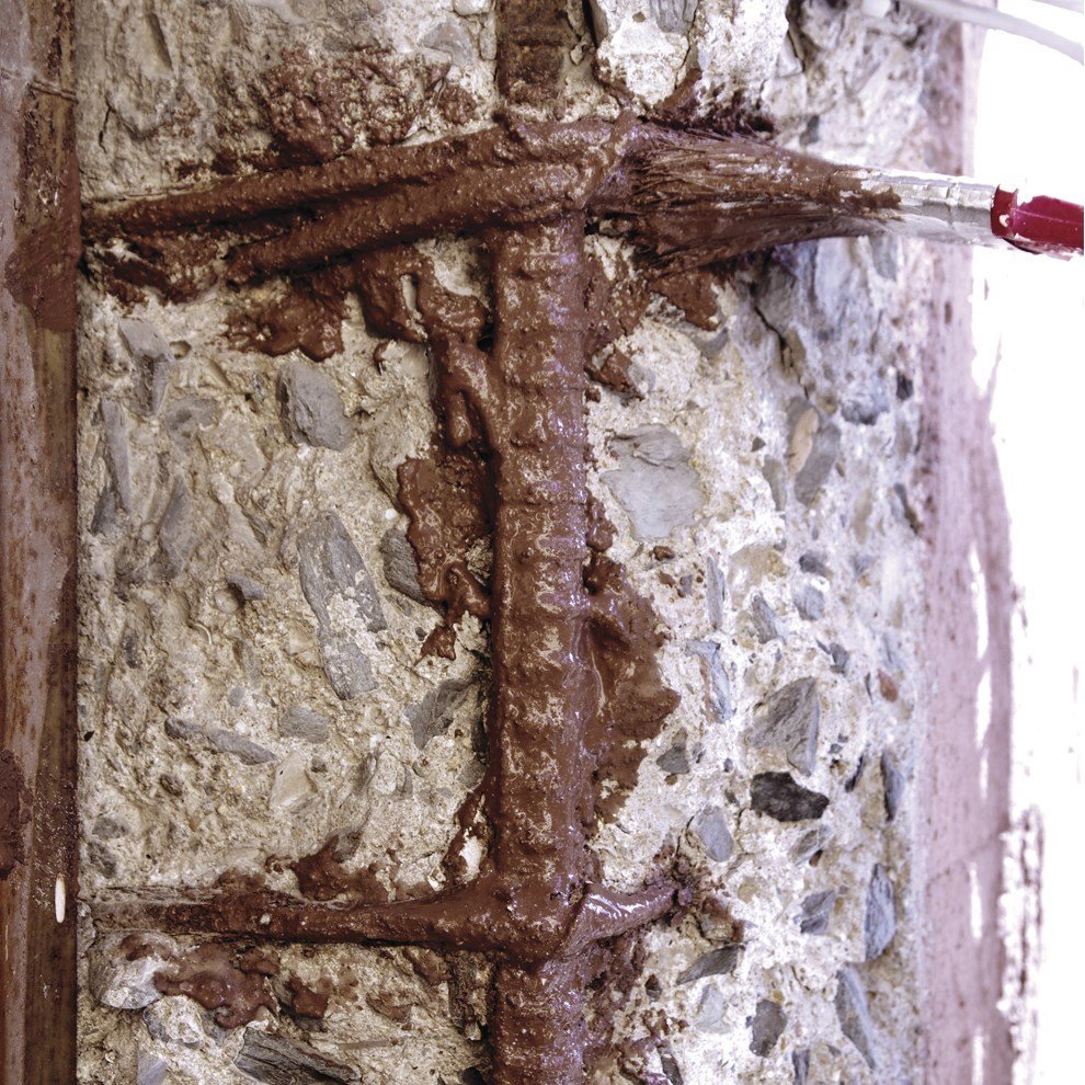 Kalekim 4410 Tamirart AC 25 kg Korozyon Önleyici AstarTanım. Korozyon önleyici yapışma artırıcı çimento esaslı tek bileşenli polimer modifiyeli kaplama ve astar malzemesidir.Özellikler. Fırça rulo veya ıslak püskürtme sistemiyle uygulanabilir.. Betona ve çeliğe yüksek yapışma mukavemeti sağlar.. Su klor ve neme karşı dirençlidir.. Buz çözücü tuzlara karşı dirençlidir.. Donatıyı neme karşı korur.Ambalaj. 25 kg kraft torbaKullanım Alanı. Beton donatılarının korozyondan korunması . Tamir harçlarının yapışma mukavemetinin artırılması amacıyla kullanılır.Teknik Özellikleri (23°C ve %50 Bağıl Nem)Genel Bilgiler. Görünüm: Kiremit renkli toz. Raf Ömrü: Açılmamış ambalajında kuru ortamda 12 ayUygulama Bilgileri. Uygulama Sıcaklığı: (+5°C) – (+35°C). Karışım Oranı: 4 5 – 5 25 lt su / 25 kg toz (Fırça/rulo uygulaması). Kap Ömrü: 1 5 – 2 saat. Tüketim (Ortalama): 2 kg/m² (1 mm kalınlık için). Katlar Arası Bekleme Süresi: 4 -5 saat. Uygulama Kalınlığı: 1 mmPerformans Bilgileri. Basınç Dayanımı (28 günde; TS EN 196-1): 60-75 N/mm². Eğilmede Çekme Dayanımı (28 günde; TS EN 196-1): 5-10 N/mm². Yapışma Dayanımı (28 günde TS EN 1542): 1 5 – 2 5 N/mm². Korozyona Karşı Koruma (TS EN 15183): Başarılı Detaylı bilgi için Whatsapp üzerinden bize ulaşın.