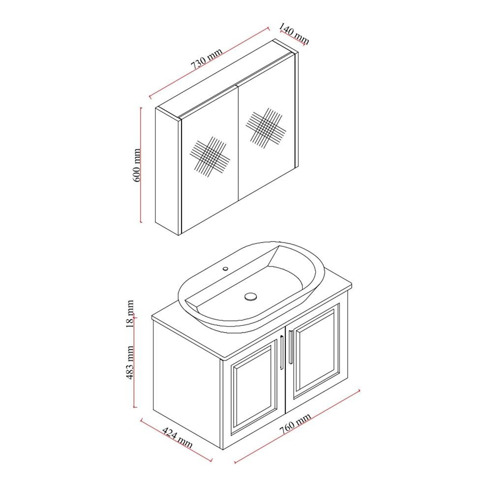 Karen Arin Tezgahüstü Lavabolu 80 cm Banyo Dolabı