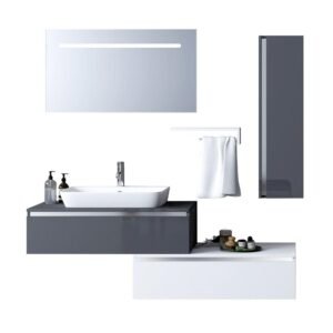 Nplus Baco Plus 160 cm Set Banyo Dolabı. Gövde: MDF üzeri polimerik high gloss kaplama. Kapak: MDF üzeri polimerik high gloss kaplama. Tezgah üstü Seramik lavabo dahildir.. 48 cm tezgah derinliği. Ledli ayna modülü. Yavaş kapanır kapak ve çekmece. Fiyata alt ve üst modül dahildir.. Fiyata boy dolabı dahildir.. Fiyata armatür ve sifon dahil değildir.. Renk: Beyaz metalik antrasit veya komple beyaz. Bu üründe alt modül ve lavabolu modülü üste montaj yaparak ölçü küçültebilirsiniz. Detaylı bilgi için Whatsapp üzerinden bize ulaşın.