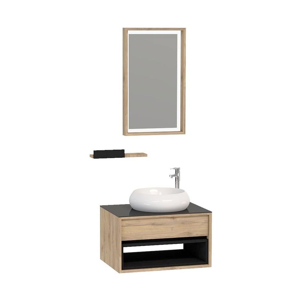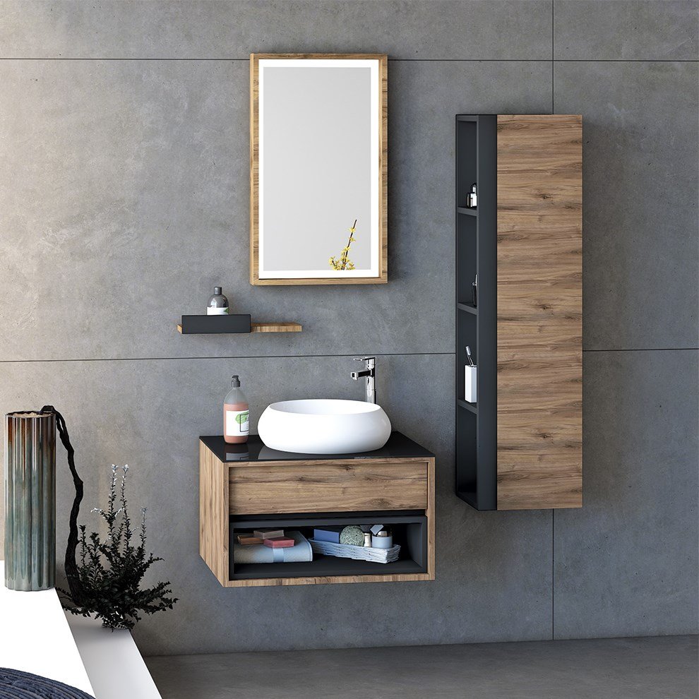 Nplus Cactus 65 cm Banyo Dolabı. Gövde: MDF üzeri melamin kaplama. Kapak: MDF üzeri high gloss kaplama. Seramik lavabo dahildir.. 48 cm tezgah derinliği. Yavaş kapanır çekmece. Ledli ayna modülü. Fiyata alt ve üst modül dahildir.. Fiyata armatür ve sifon dahil değildir.. Boy dolabı ayrıca satın alınmalıdır.. Renk: Dorado berlin ve beyaz. Bu ürün ile birlikte yüksek tip lavabo bataryası kullanılması gerekmektedir. Detaylı bilgi için Whatsapp üzerinden bize ulaşın.