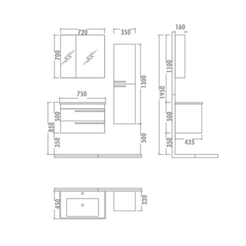 . Raflı dolaplı üst ayna modülü