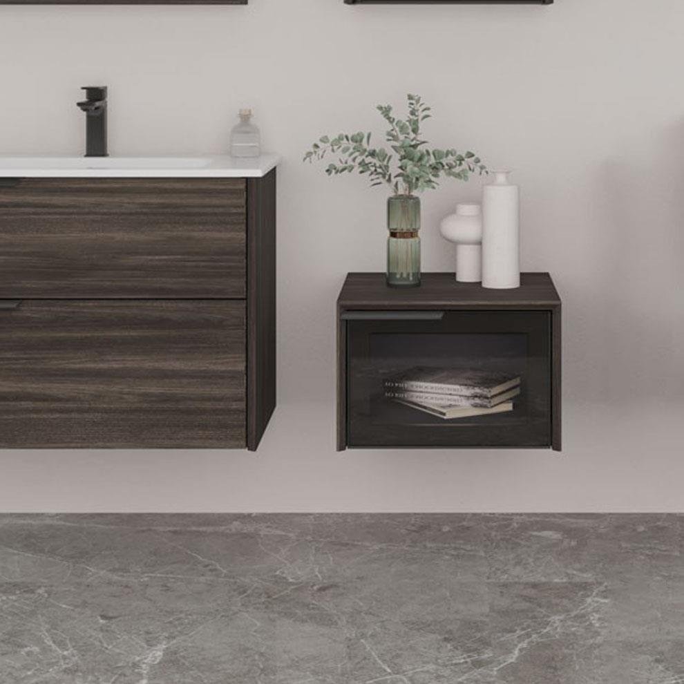 . Füme camlı metal çekmece