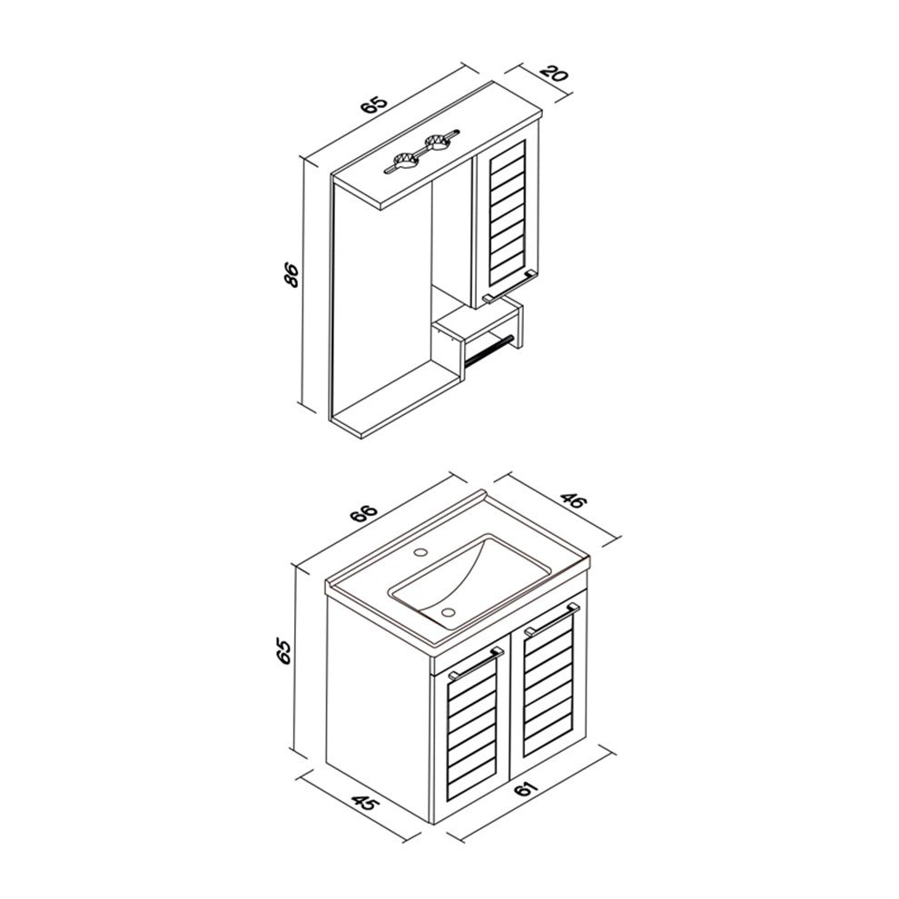 Orka Perge 65 cm Banyo Dolabı