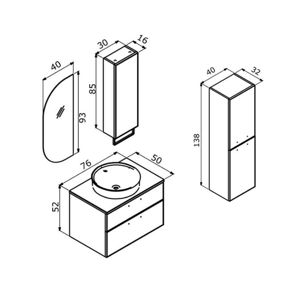 Orka Salerno 75 cm Banyo Dolabı Takımı
