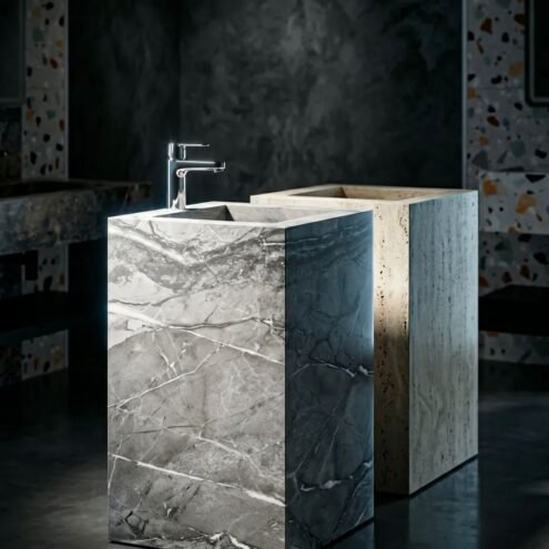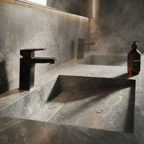 Modern banyolar için tasarlanan özel ölçü porselen lavabo modelleri, büyük ebatlı porselen seramik slab malzemelerden üretilir ve projeye özel ölçülerde hazırlanır. Minimal tasarımı, yüksek dayanımı ve hijyenik yapısıyla hem konut hem de ticari projelerde tercih edilen modern bir lavabo çözümüdür.
