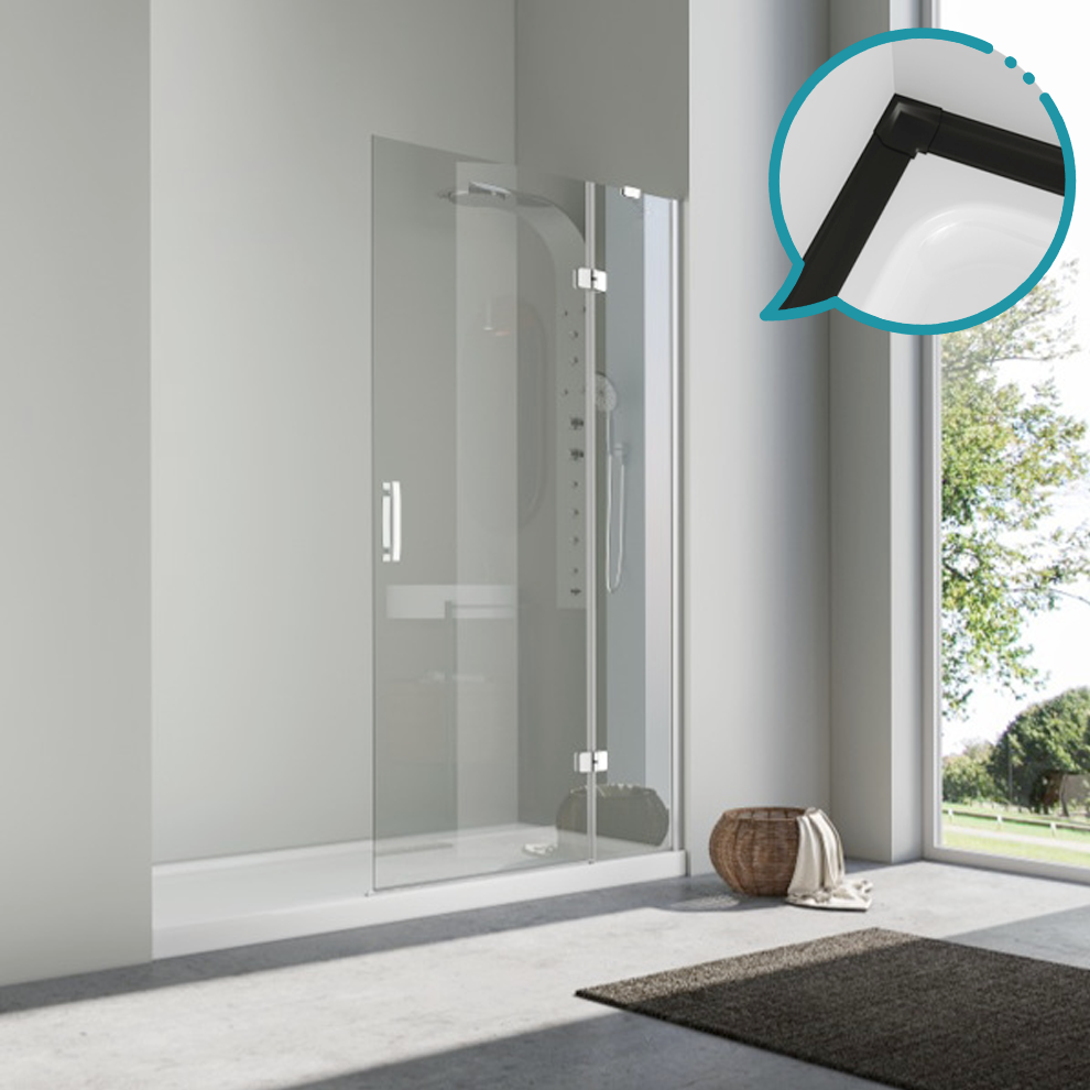 Pakduş Karizma 100 cm 1 Sabit 1 Açılır Siyah Dikdörtgen Duşakabin