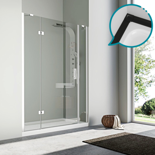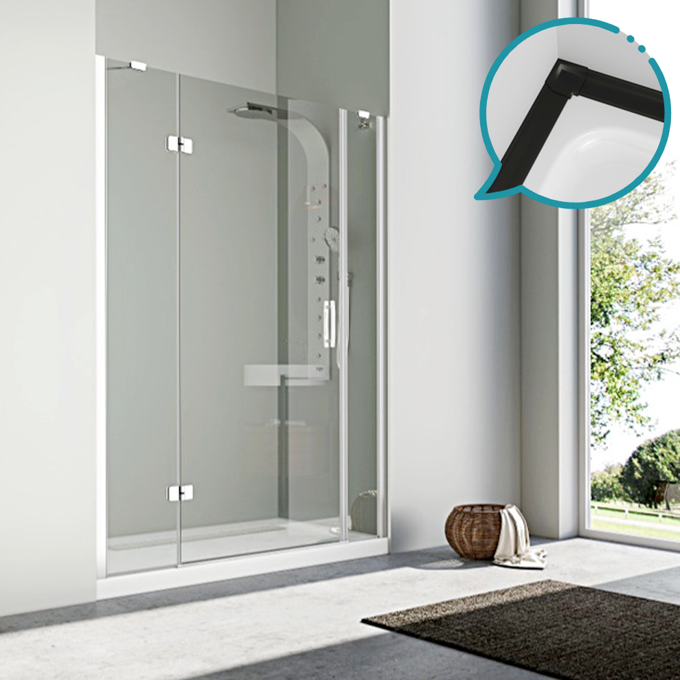 Pakduş Karizma 100 cm 2 Duvar Arası 2 Sabit 1 Açılır Siyah Dikdörtgen Duşakabin
