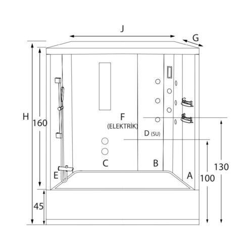 Shower Almeda 120×80 cm Mini Küvet Üzeri İki Duvar Arası Kompakt Sistem. 212 cm yükseklik. Hidro sistem. Buhar sistemi. Krom renkTekne ve tavan beyaz %10 full siyah modellerde %20 fiyat farkı uygulanmaktadır.Renk seçenekleri kabinler için geçerlidir iç duvar standart çerceve profil rengi parlaktır.Yapacağınız renk seçeneği için 444 47 31 numaralı destek hattımızdan bilgi alabilirsiniz.Sistem 1:. Akrilik dikdörtgen küvet duvar ve tavan. 6 mm lüks kabin. Sürgülü el duşu. Yönlendiricili batarya. Yönlendiricili gaga. 10’lu jet sistemi. Tepe duşu. Şampuanlık ve aynaSistem 2:Sistem 1’e ek olarak;. Lamba. FanSistem 3:Sistem 1’e ek olarak;. Lamba. Fan. Radyolu dijital kontrol paneli. Ozon engelleyiciSistem 4:Sistem 1’e ek olarak;. Lamba. Fan. Radyolu dijital kontrol paneli. Ozon engelleyici. Buhar sistemi. Bluetooth telefon Detaylı bilgi için Whatsapp üzerinden bize ulaşın.
