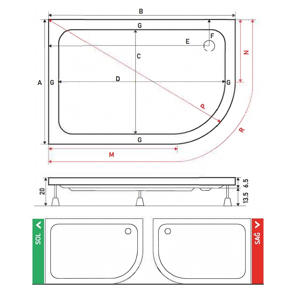 Shower Marissa 120×100 cm Asimetrik Duş Teknesi