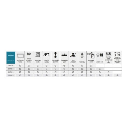 Shower Nils 160×75 cm Dikdörtgen Tekne Üzeri Kompakt Sistem. 216 cm yükseklik. Hidro sistem. Krom renkTekne ve tavan beyaz %10 full siyah modellerde %20 fiyat farkı uygulanmaktadır.Renk seçenekleri kabinler için geçerlidir iç duvar standart çerceve profil rengi parlaktır.Yapacağınız renk seçeneği için 444 47 31 numaralı destek hattımızdan bilgi alabilirsiniz.Sistem 1:. Akrilik dikdörtgen tekne duvar ve tavan. 6 mm lüks kabin. Sürgülü el duşu. Yönlendiricili batarya. Yönlendiricili gaga. 10’lu jet sistemi. Tepe duşu. Şampuanlık ve aynaSistem 2:Sistem 1’e ek olarak;. Lamba. FanSistem 3:Sistem 1’e ek olarak;. Lamba. Fan. Radyolu dijital kontrol paneli. Ozon engelleyiciSistem 4:Sistem 1’e ek olarak;. Lamba. Fan. Radyolu dijital kontrol paneli. Ozon engelleyici. Buhar sistemi. Bluetooth telefon Detaylı bilgi için Whatsapp üzerinden bize ulaşın.