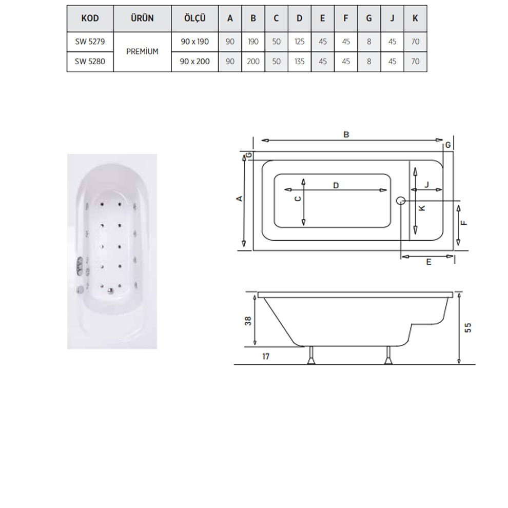 Shower Premium 200×90 cm Özel Küvet . 55 cm yükseklik. Ayak ön panel yan panel ve gövde fiyatıdır. Hidro masaj sistemi ilave olarak satın alınabilir Detaylı bilgi için Whatsapp üzerinden bize ulaşın.