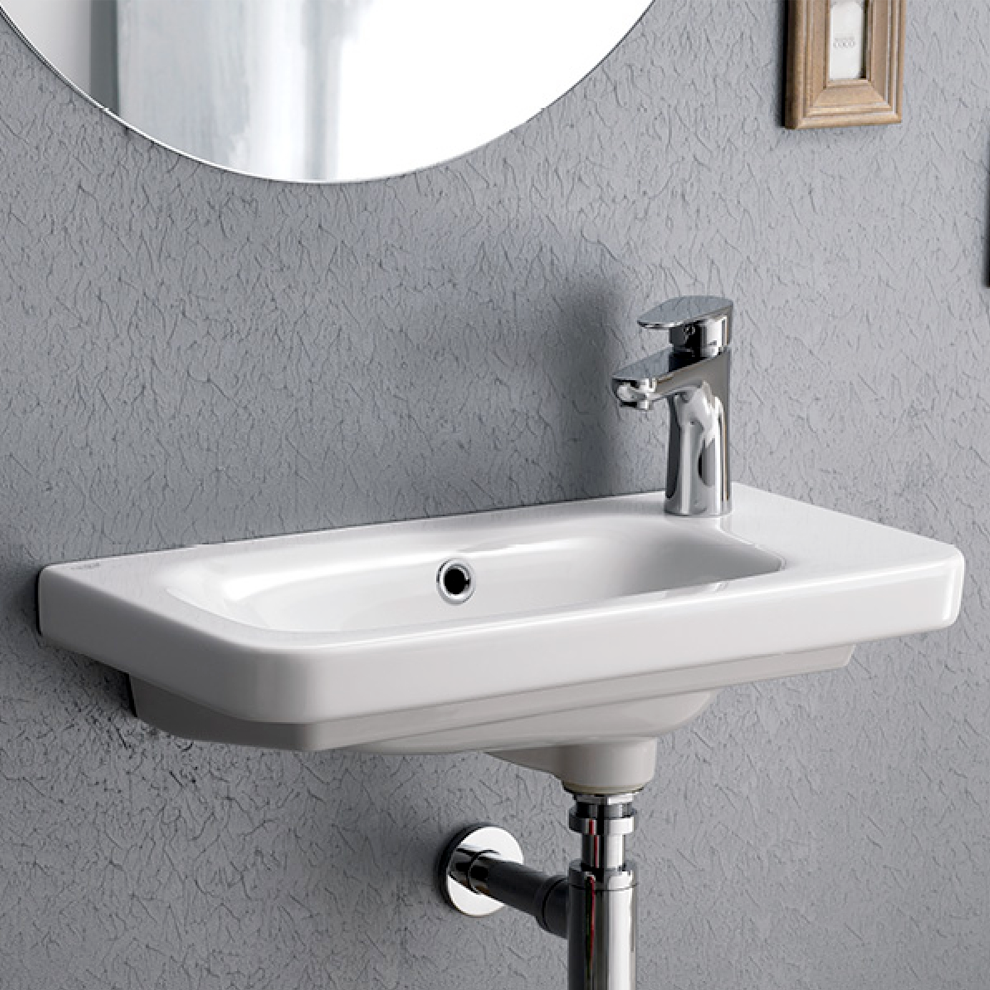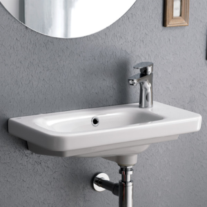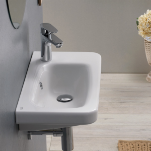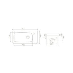 Turkuaz Noura 60 cm Etajerli Dar Lavabo. Beyaz. 60×30 cm. Sağ armatür delikli. Su taşma delikli. Fiyata batarya ve sifon dahil değildir.Ürün boyutları +- 1 cm değişiklik gösterebilir. Detaylı bilgi için Whatsapp üzerinden bize ulaşın.