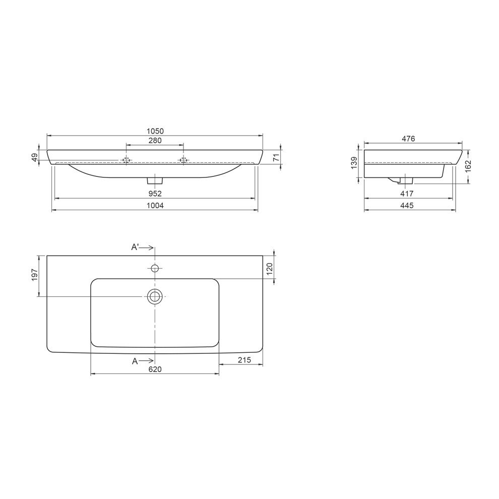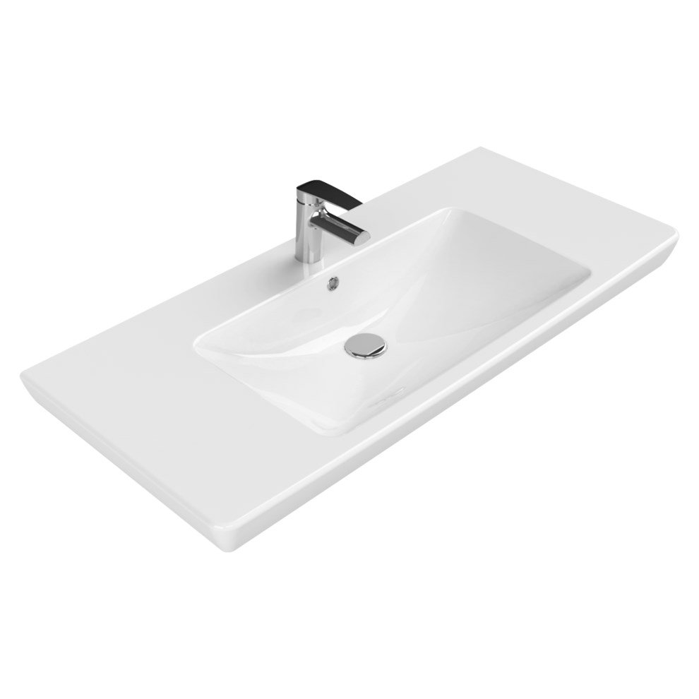 Turkuaz Porto 105 cm Etajerli Lavabo. Beyaz. 105×48 cm. Armatür delikli. Su taşma delikli. Fiyata batarya ve sifon dahil değildir.Ürün boyutları +- 1 cm değişiklik gösterebilir. Detaylı bilgi için Whatsapp üzerinden bize ulaşın.