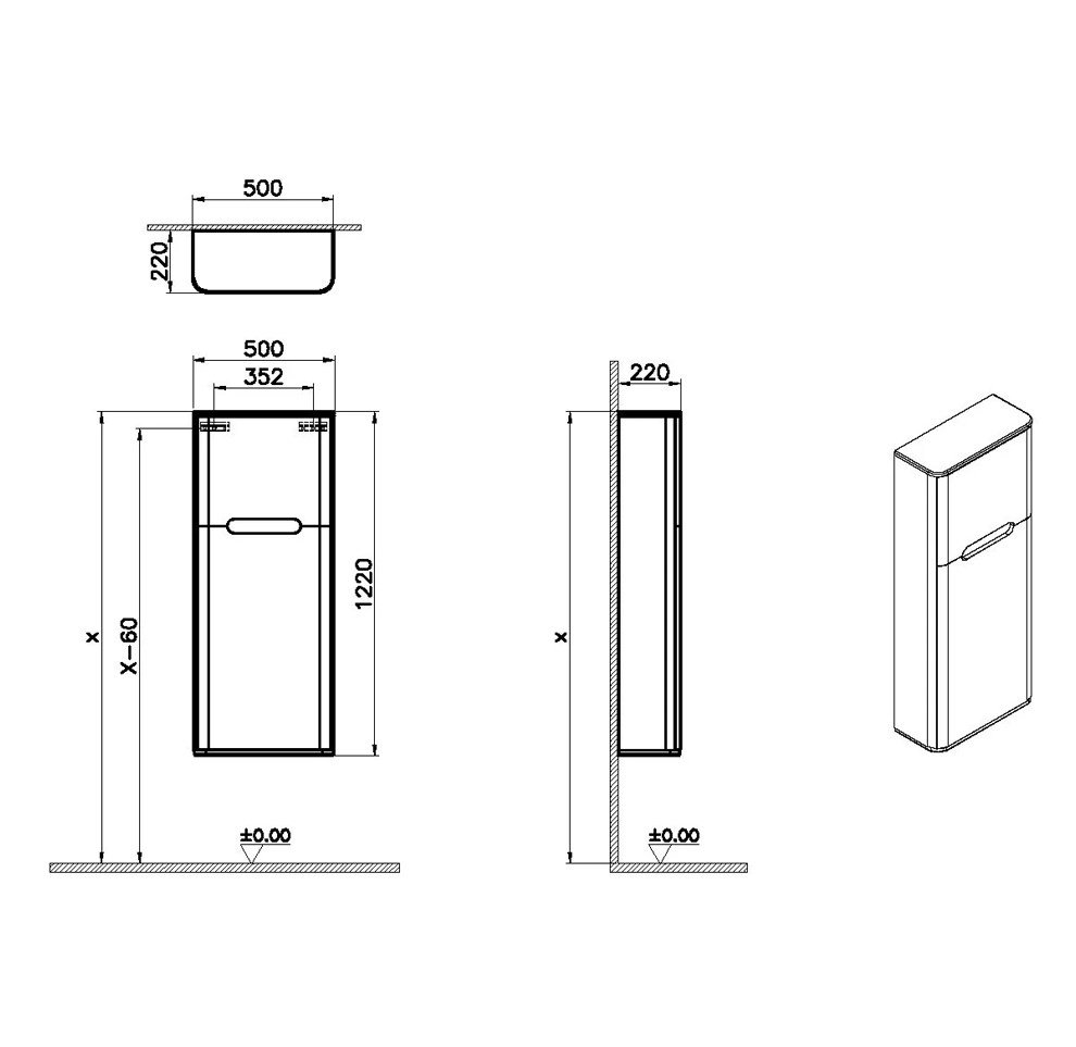 VitrA Sento 50 cm Mat Antrasit Sağ Açılır Dar Boy Dolabı. Ebat: 50x22x122 cm. Boy dolabı tipi: Kapaklı. Kapak kaplama: Termoform. Aydınlatma: Hayır. Gövde kaplama: Termoform. Garanti Süresi: 2. Renk: Antrasit. Bağlantı Tipi: Asma. Kulp: Kulpsuz. Yüzey: Mat Detaylı bilgi için Whatsapp üzerinden bize ulaşın.