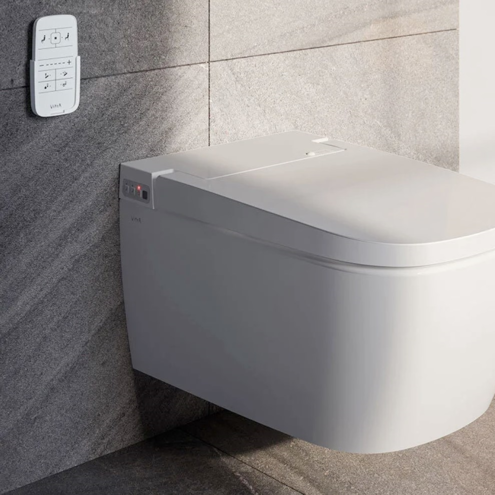 VitrA V-Care Comfort Rim-ex Beyaz Kanalsız Akıllı Asma Klozet. Beyaz. Gizli montaj. Klozet kapağı fiyata dahildir.. Outlet ibareli ürünler mağazalarımızdaki teşhirde yer alan ürünlerdir. Ürünler satın aldığınız tarihten itibaren minimum 2 yıl garantilidir.. Outlet ürünler kutusuzdur tarafımızdan ambalaj yapılmaktadır.V-Care Akıllı Klozet el değmeden kişisel temizlikte en ileri noktayı temsil ediyor. Her özellik uzaktan kumanda ile kullanılabiliyor ve kişiye özel olarak ayarlanabiliyor. Yazılımı ağ bağlantısı sayesinde sürekli olarak güncelleniyor. V-Care Comfort’un uzaktan kumandasında otomatik kapak açma/kapama kapak oturma yeri açma/kapaka arkadan öne yıkama ön yıkama arka yıkama masajlı yıkama durdurma seviye düşürme seviye yükseltme su basıncı taharet musluğu konumu su sıcaklığı oturma yeri sıcaklığı kurutucu ve kurutucu sıcaklığı seçenekleri mevcut. Entegre taharet musluğu cinsiyete özel yıkama seçenekleri sunar ve her kullanımdan önce ve sonra kendini temizler. V-Care Akıllı Klozet Tasarımı özel bir kireç giderme çözümü ile kireç birikintilerine karşı savaşarak kireç birikintilerinin zarar verici etkisinden korunma sağlar. Detaylı bilgi için Whatsapp üzerinden bize ulaşın.