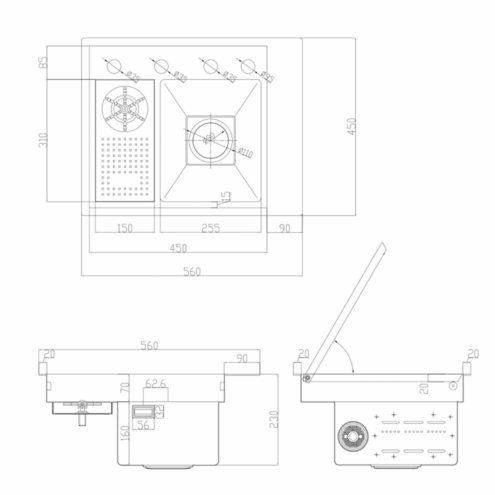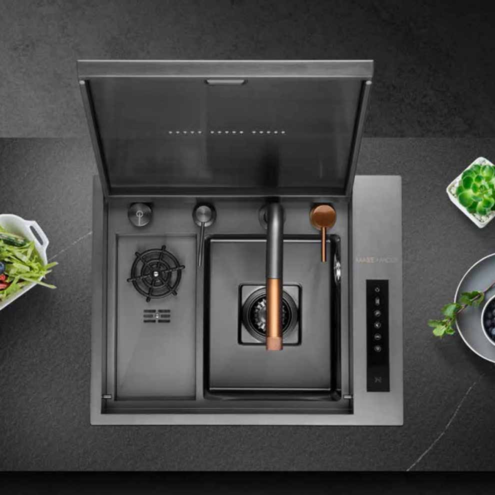 Mase Mode 56 cm Villore Teknolojik Evye Seti. 304 Paslanmaz Çelik. Honeycomb kabartma teknolojisi. Çizilmeye aşınmaya karşı dirençli. Tezgah altı ve üstü montaj için uygundur. . Bataryaya entegre ankastre sıvı sabunluk. Dijital 5 Fonksiyonlu Teknolojik Evye Seti. Arıtma cihazı ile bağlantılı su arıtma musluğu. Döner anahtar ayarlanabilir sıcak ve soğuk su.. Donmuş yiyecekleri üzerinde çözmek için ilave aksesuar. Su gücü ile çalışan sıcaklık ve akış süresini gösteren ekran. Tek tuş ile bastırma gerektirmeyen bardak yıkama fonksiyonu. Temizlenmesi kolay yüksek kaliteli yumuşak silikon su çıkışları. Çift klavuz ray tasarımı: Kaydırma temizleme verimliliğini artırır.. Elektrik bağlantısı gerektirmeyen dijital sıcaklık ve zaman kontrol ekranı. Şelale modu meyve ve sebzeleri temizlemek için kullanışlı ve geniş alan sunar.. Drenaj kontrolörü anahtarı çevirerek eğimli tasarlanmış eviye içindeki suyu temiz ve hızlı bir şekilde boşaltma. Spiralli evye bataryası ile eviyenin her köşesi kolayca temizlenebilir. Evye bataryasındaki iki kanatlı yıkama modu lekeleri kolayca çıkarır.. Product Size: 560*450*230 mm. Cut Out Size: 530*420*R15 mm. Material: SUS304. Eviye kalınlık: 3 mm + 1 2 mmSet İçeriği:. 1 adet süzgeç. Paslanmaz çelik eviye. Bardak yıkama bölümü. Drenaj anahtarı ve eviye seti. Entegre sabunluk ve musluğu. Batarya seti Detaylı bilgi için Whatsapp üzerinden bize ulaşın.