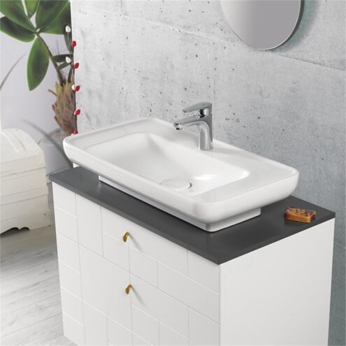 Turkuaz Lal 80 cm Tezgah Üstü Lavabo. Beyaz. 80×42 cm. Armatür delikli. Su taşma deliksiz. Tezgah üstü kullanıma uygundur.. Fiyatlara armatür ve sifon dahil değildir.Ürün boyutları +- 1 cm değişiklik gösterebilir. Detaylı bilgi için Whatsapp üzerinden bize ulaşın.